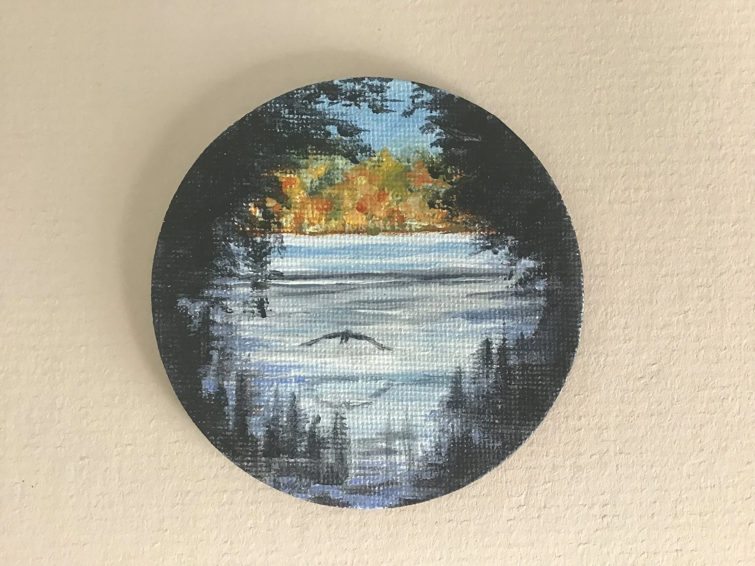 3” round paintings on canvas magnets! Sticks to any metal surface… refrigerator, filing cabinet, etc. Perfect gift for someone who relates to the place, activity, or subject.